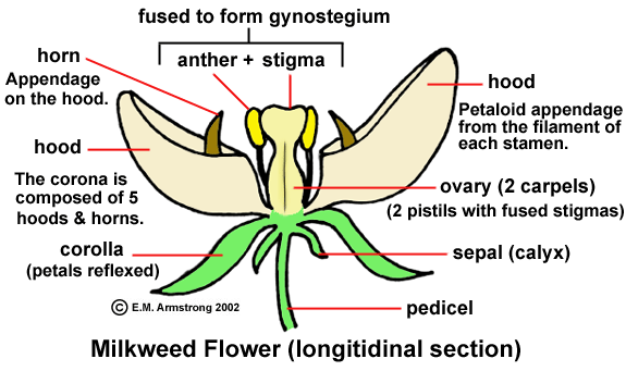 Here is the anatomy of a milkweed: